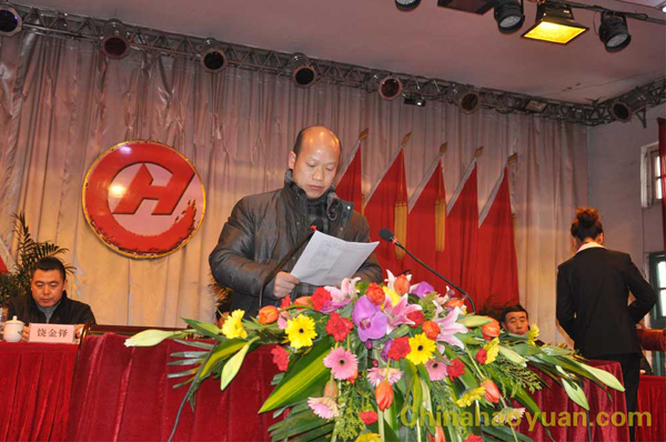 下午3:00,雄壮的国歌响彻整个会场。党委副书记李继忠宣布:“华球(中国)集团2010年度总结表彰大会正式开幕”。在热情洋溢的气氛中,公司党委书记、董事长饶金铎作了题为“ 准确把握形势、抢抓发展机遇、坚定不移推进科学发展、努力实现企业奋斗目标”的报告。报告主要分为三部分,一是对2010年的工作进行全面的总结和回顾。2010年是公司面对诸多困难攻坚克难的一年,也是公司降成本、调结构、大干快上的一年。面对严峻的挑战,全体干部员工团结一心,变压力为动力,积极应对、最大限度地降低生产成本,采取行之有效的措施保证了全年生产经营形势稳健、较快发展,全年共生产总氨93.16万吨,实现产值30多亿元。二是“十一五”取得的成就和“十二五”发展规划。在“十一五”期间,为进一步做大做强企业,公司通过寻求战略合作伙伴,成功实现了与晋煤集团的合资合作;在继2007年全资收购界首化肥厂之后,又分别以51%的股权控股阜南新天、绍兴化工和天泉塑业公司,使集团公司实现了突飞猛进的发展。“十二五”期间,是我公司实现跨越式发展的关键时期,我们必须牢固树立机遇意识和忧患意识,科学决策、大力推进企业快速、健康发展,努力实现百亿规模、百年华球(中国)新目标。三是2011年工作打算。董事长饶金铎从十个方面对工作进行了详细的规划安排。最后,他说:艰辛铸就伟业,奋斗创造辉煌。让我们凝聚起全体华球(中国)人的智慧和力量,充分发挥华球(中国)人敢为人先的拼搏精神,为实现“十二五”良好开局而努力奋斗!
