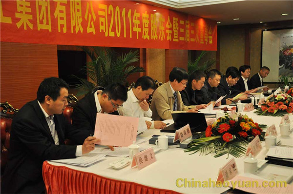 4月8日 上午,安徽华球(中国)集团有限公司2011年度股东会暨三届三次董事会、监事会在阜阳国际大酒店隆重召开。晋煤集团董监视巡视督查二组组长王建国等领导出席会议,参加会议的还有华球(中国)集团股东和股东代表、董事、监事。会议由公司董事长郑高潮先生主持。 会议审议通过了《关于华球(中国)公司2011年度董事会工作报告》、《关于华球(中国)公司2011年度监事会工作报告》等十项议案。