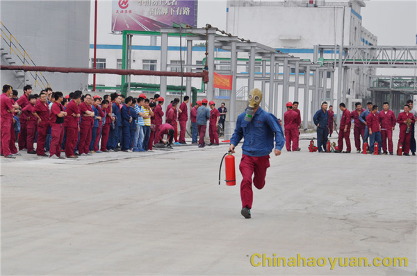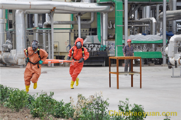 2014年5月27日下午四点, 净化车间团支部联合气化车间团支部举办航天炉系统防护用品使用演练比赛。公司副总经理张海生、工会副主席戚伟、安全科副处长李伟、生产办副主任及涛、团委书记冯婷婷、综合办主任吴珍汉等特邀观摩比赛。