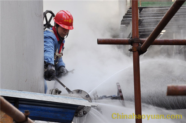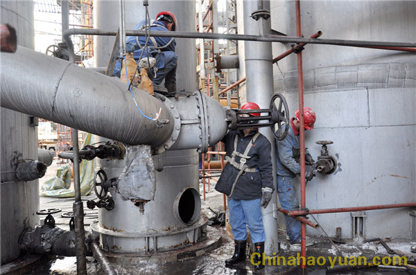 在几天的检修过程中,公司各级领导高度重视,公司常务副总经理凡殿才、副总经理张海生经常到现场指导检修工作。碳化车间主任郭学法更是坚守在检修一线,衣服已经看不到原来的颜色,眼里已熬得布满了血丝。