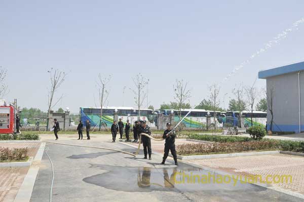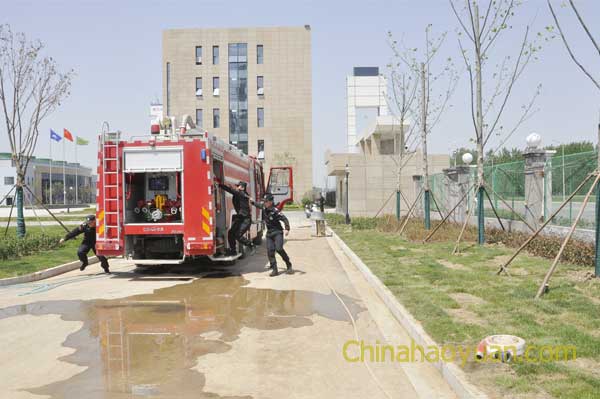 消防演练分理论培训和实践操作两部分。理论培训重点讲解防火要领、安全消防常识、如何扑救初期火灾等知识;实践操作主要针对防护服穿戴、消防水带连接、灭火器正确使用及消防车班组操作方法。保卫人员反应敏捷,圆满完成了预定科目演练。