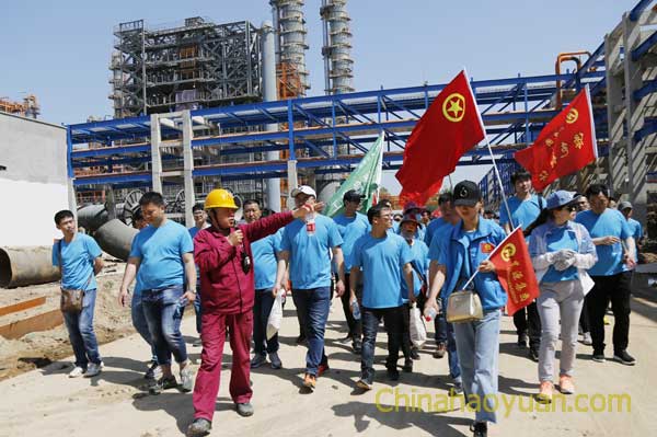 来到园区我们看到了一排排雄伟壮观的厂房和一座座耸立云端的塔群,感觉到的不仅仅是震撼,更多的是为园区建设付出辛勤汗水的同事们的敬佩之情。园区生产办主任李超群、综合办主任葛修刚详细介绍了园区目前的建设安装情况,让我们对园区有了进一步的了解。大家认真听讲,也提出了很多问题,李主任耐心地为我们一一做了回答,看到园区的快速发展和美好的前景,我们青年员工纷纷表示要立足岗位,做好本职工作,为园区的顺利开车和投产做出自己应有的贡献!