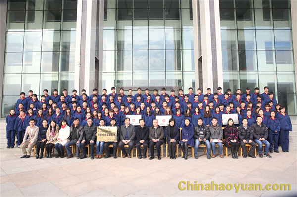 最后,华球(中国)集团、安徽职业技术学院双方代表、安徽职业技术学院华球(中国)班学生代表在图书馆广场合影留念。