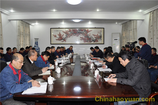 在公司会议室,通过民主评议形式对华球(中国)公司领导班子和领导2014年度工作进行综合考核评价。