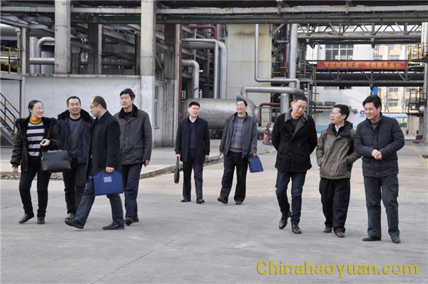 丁栋梁一行在公司领导陪同下,首先深入到生产一线,实地察看公司重点建设项目航天炉装置及4#尿素装置运行情况。