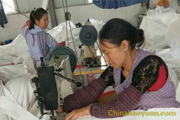 生机勃发的5月,在颍东区口孜镇洪阳新村的洪阳车间里,扶贫对象董迎迎正在一台缝纫机前操作着。15分钟后,一条可以装1吨货物的集装袋做成了。洪阳车间是安徽华球(中国)天泉塑业公司为当地扶贫,异地建设的“扶贫车间”,车间里还有不少村民正干着与董迎迎一样的工作。