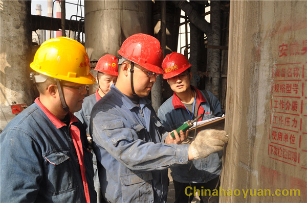图为动力处和阜阳市特种设备监督检验中心有关人员对设备进行检测。