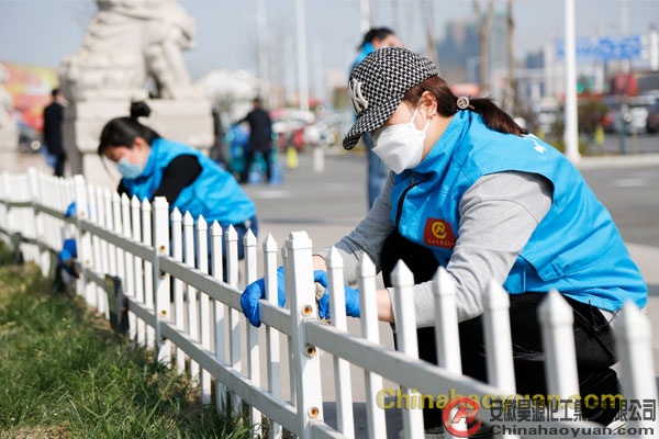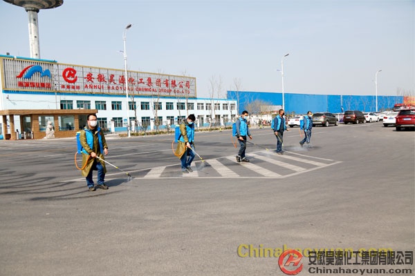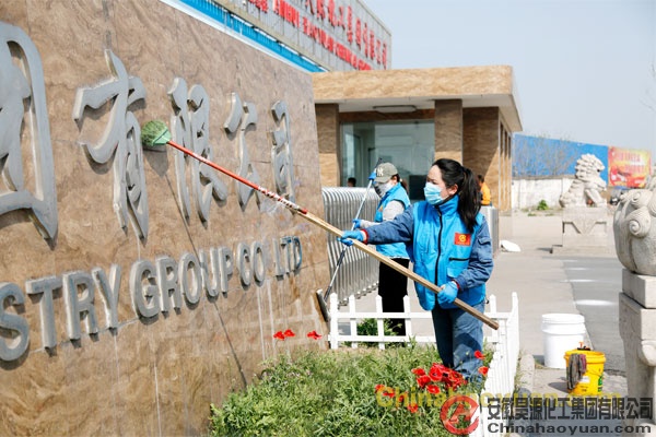 本次活动重点,公司大门口及停车场消毒和照壁清扫。在穿戴好口罩、手套等个人防护用品后,一群穿着 “志愿服务队”蓝马甲,手持拖把、毛巾、扫帚、簸箕及消毒用药桶的“清扫员”“消毒员”,兵分两路开始了清扫消毒工作。一组手拿毛巾认真擦洗厂门口的照壁和栏杆,清扫门口草坪上飘洒的树叶,捡拾抛洒的垃圾等;一组背着消毒药桶对厂区大门口道路、停车场周围和垃圾桶进行认真细致的消毒。大家拧成一股绳,将团结合作的精神体现得淋漓尽致。