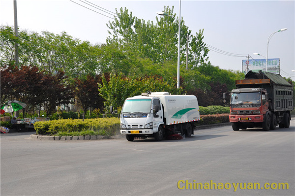 为了保持厂区道路清洁卫生,公司还投资90多万元先后购买了两台清扫工程车辆,以更好的完成厂区的保洁任务,同时公司还不定期的抽调人员,派出清扫车辆对厂区周边的阜蚌路、向阳北路以及北三环等路段进行清扫。(图为清扫车在公司东门向阳北路清扫路面)