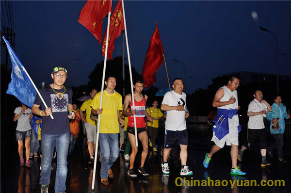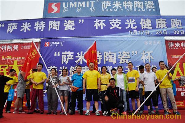 在荧光跑开幕式现场,华球(中国)集团的参赛队伍最为耀眼。两面华球(中国)大旗迎风飘扬,“奔跑吧,华球(中国)”是我们的口号,“健康生活、快乐运动”是我们的主题,“绿色化工、美好生活”是我们的品牌形象。