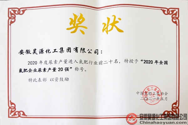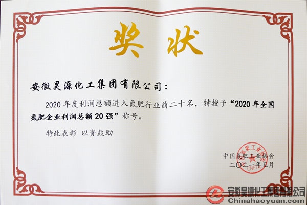 据悉,氮肥行业合成氨产量、尿素产量、利润总额20强评选由中国氮肥工业协会主办,每年开展一次。此次评选主要根据全国氮肥行业各企业2020年合成氨产量、尿素产量、利润总额等进行评比。