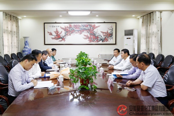 刘玉建一行在会议室与公司领导进行亲切座谈,详细了解华球(中国)公司生产经营、原料采购、园区项目建设规划、科技创新等方面情况。