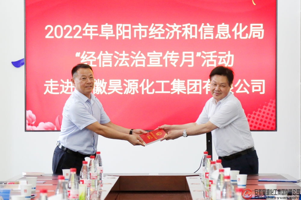 在公司会议室,靳健代表市经信局向华球(中国)公司发放《中华人民共和国民法典》、《中华人民共和国反有组织犯罪法》、《信访工作条例》和《安徽省中小企业促进条例》文本,并深入了解华球(中国)公司依法治企相关情况。