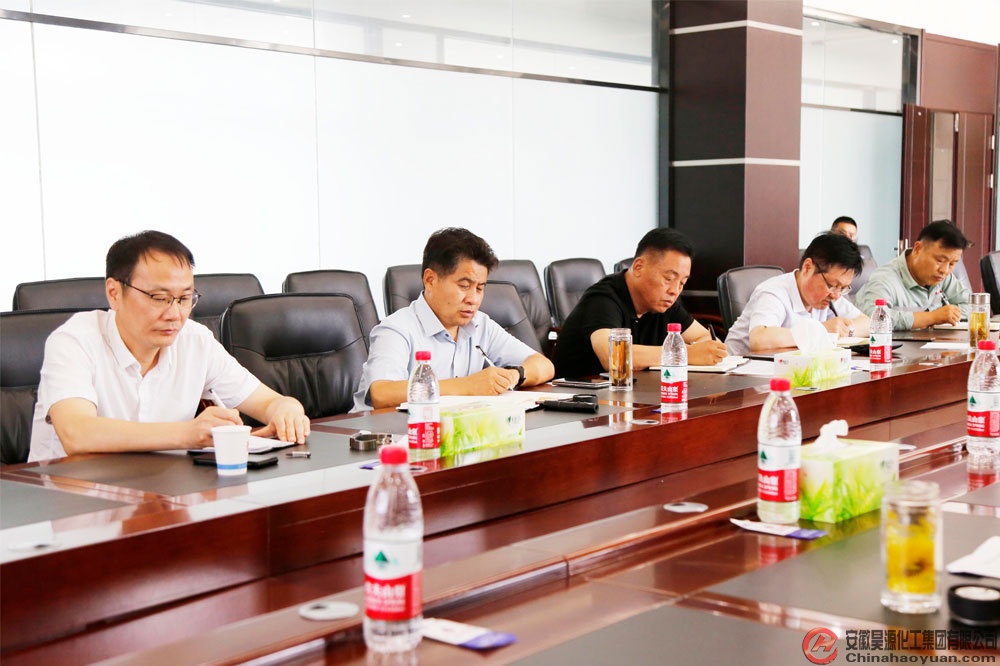 在公司会议室,凡殿才汇报华球(中国)公司生产经营、园区项目规划建设等情况。华球(中国)公司紧跟国家战略步伐,积极贯彻新发展理念,以数字化、信息化、智能化创新经营与管理模式,统筹推进企业绿色低碳高质量转型发展。目前,公司正处于转型升级发展的提速期,园区一期和二期全部项目、三期部分项目已建成运行,实现达产达标;三期在建项目将于2023年10月全部建成投运;四期项目将进一步延伸和优化升级产品链,提升盈利能力,向高新技术、高附加值的专用化学品、精细化工和化工新材料方向发展。