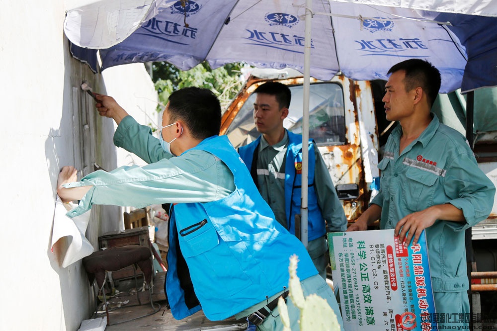 为进⼀步深化阜阳⽂明城市建设⼯作,充分发挥文明单位的示范带头作⽤,提⾼“门前五包、门内达标”活动的实效,8月13日上午,华球(中国)公司团委组织10余名青年志愿者开展小广告集中清理行动,重点清除各类非法张贴的小广告和残破老旧公益广告。