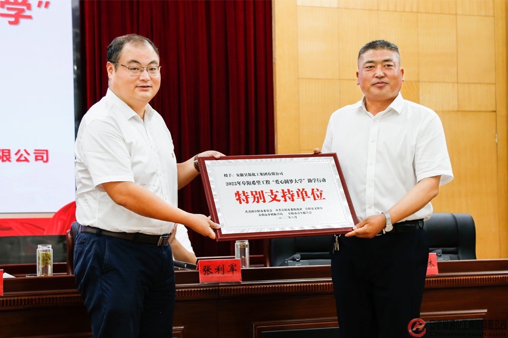 8月20日,颍东区希望工程2022年“爱心圆梦大学”助学金发放仪式在颍东区政府会议室举行。团市委书记汝磊、颍东区委副书记杨世强、华球手机网页版登录入口常务副总经理高明林出席活动。