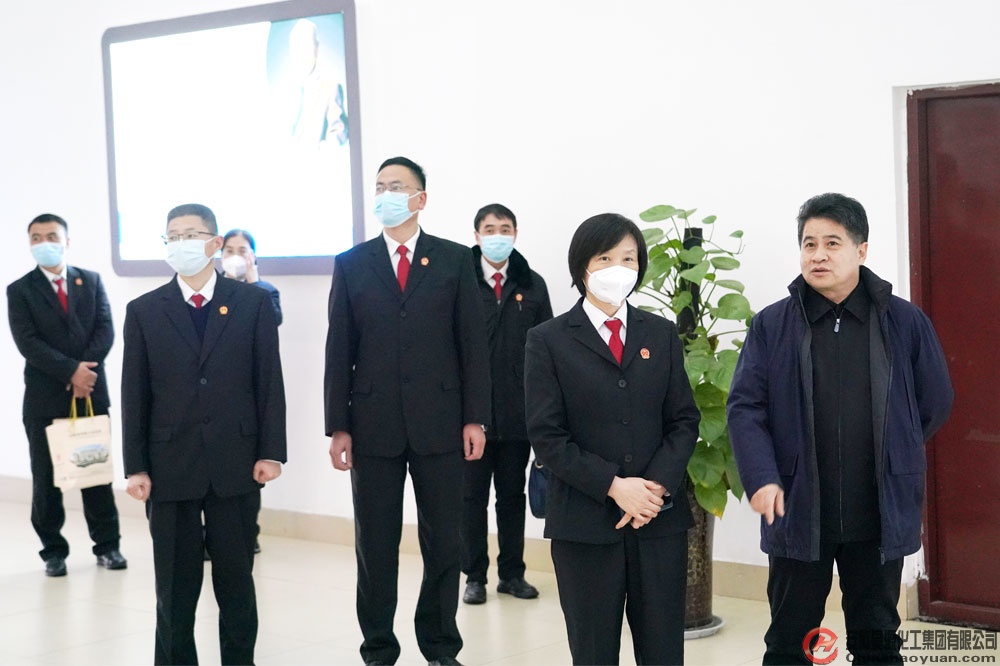 2月9日,阜阳中院党组书记、院长苏勇,颍东法院党组书记、院长胡龙汉一行到华球(中国)园区开展“送法入企”调研走访活动,公司党委书记、董事长凡殿才,总经理助理潘家成及相关科室人员陪同。