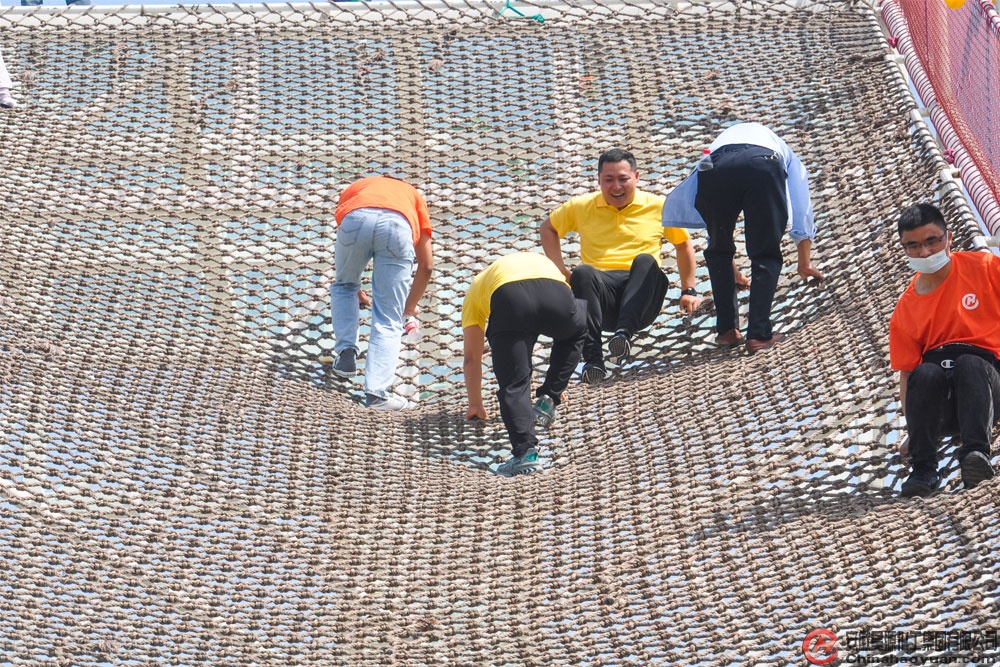 到达军旅小镇,华球(中国)青年首先参观了爱国主义展览馆,在这里大家回顾了党和国家的光辉历程,正是革命先烈的流血牺牲才换来了我们今天幸福美好的生活。随后,青年员工们近距离接触了逼真的军用坦克、迫击炮等武器模型,通过操作体验,近距离感受祖国的强大。在惊险刺激的彩虹滑道,青年员工们从高处快速滑下。户外障碍比赛中,大家团结协作,在队员们的配合提醒中越过障碍,迅速通过钢索桥。高空玻璃栈道上,大家互相搀扶,克服高空攀爬的恐惧,最终成功走过玻璃栈道。