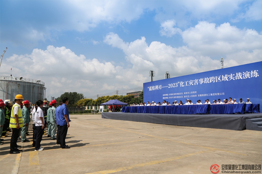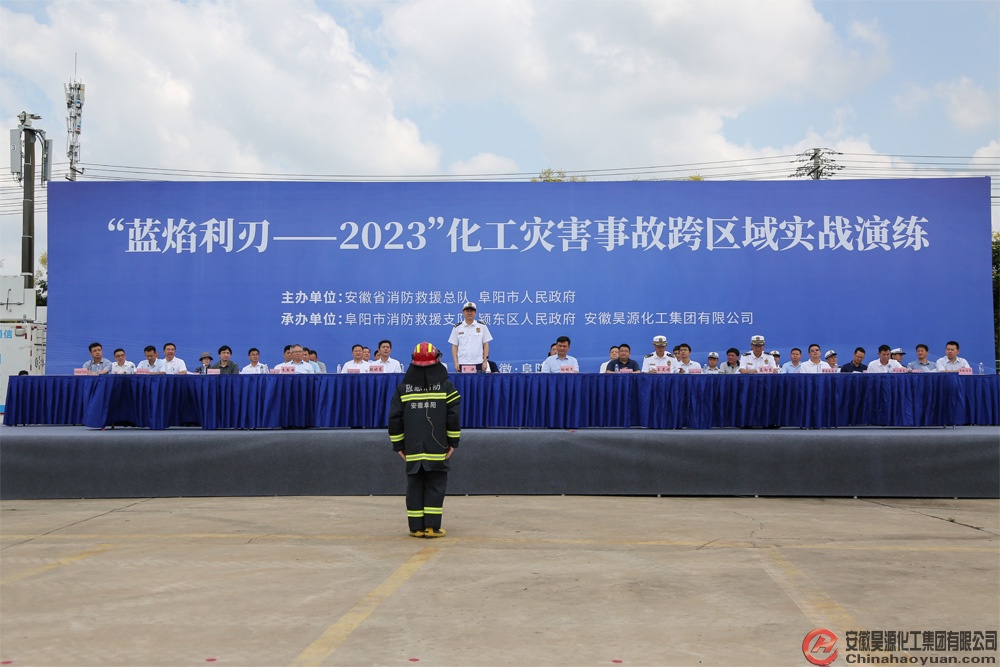 为检验全省消防救援队伍跨区域联合作战和与地方应急联动力量协调处置能力,提升队伍应对化工灾害事故处置的实战水平,9月14日,由安徽省消防救援总队、阜阳市人民政府主办,阜阳市消防救援支队、颍东区人民政府,华球手机网页版登录入口承办的“蓝焰利刃--2023”化工灾害事故跨区域实战演练在华球(中国)公司老厂停产装置区开展。阜阳市委副书记、市长胡明文,安徽省消防救援总队长李斌、副总队长王其堪,阜阳市副市长、公安局长张晓东,阜阳市消防支队政委孟向东,市政府法制办党组书记、主任朱敬田,华球(中国)公司党委书记、董事长凡殿才出席活动并观摩演练。公司副总经理张海生参加演练应急救援指挥。