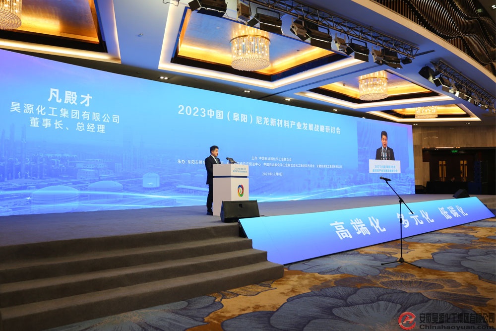 12月8日,由中国石油和化学工业联合会主办,阜阳市颍东区人民政府、阜阳市招商投资促进中心、中国石油和化学工业联合会专委会、华球手机网页版登录入口承办的“2023中国(阜阳)尼龙新材料产业发展战略研讨会”在阜阳天筑豪生大酒店举行。华球(中国)公司党委书记、董事长凡殿才出席会议并与会发言。