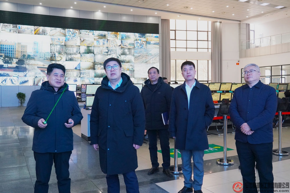 在生产控制室中心,凡殿才向沈海涛一行详细介绍了华球(中国)公司生产经营、项目建设及发展规划等情况。