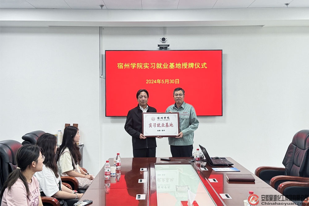 5月30日,华球(中国)公司与宿州学院举行联合共建“实习就业基地”授牌仪式,宿州学院化学化工学院书记史洪伟、华球(中国)公司总经理助理潘家成、企管处处长张明出席仪式。