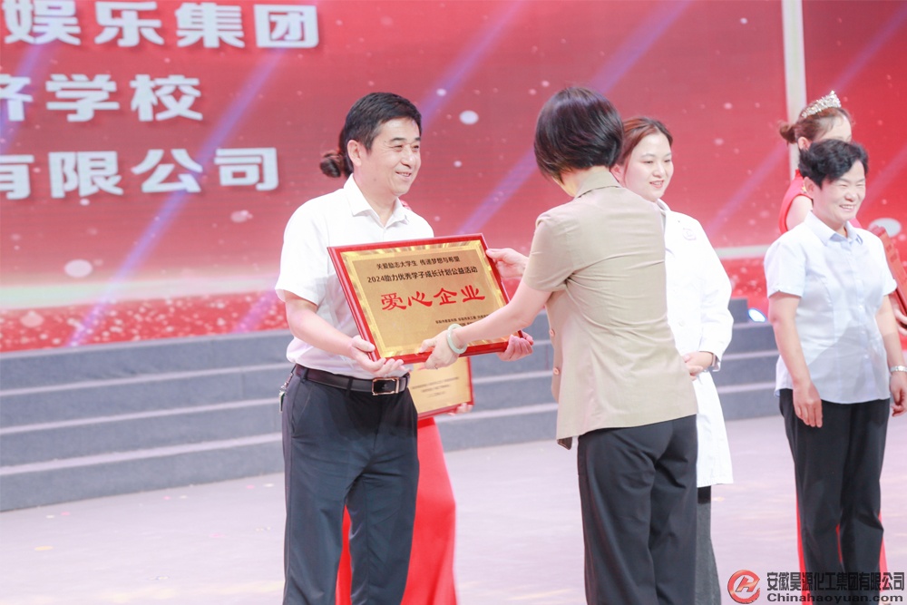 8月13日,由中共阜阳市委宣传部、市关工委、共青团阜阳市委、市妇联、阜阳广播电视台共同主办的“青春逢盛世 奋斗正当时,2024助力优秀学子成长计划公益晚会”在阜阳广播电视台演播大厅举行。工会副主席戚伟代表华球(中国)公司出席晚会,并为优秀学子颁发励志助学金。会上,华球手机网页版登录入口被授予“爱心企业”光荣称号。