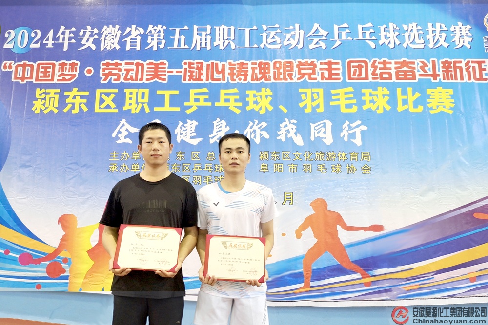 8月18日,由颍东区总工会和颍东区文旅局联合主办的 “中国梦•劳动美——凝心铸魂跟党走 团结奋斗新征程”颍东区乒乓球、羽毛球比赛,在颍东区全民健身中心隆重举行,华球(中国)公司积极组织员工参加比赛并荣获佳绩。