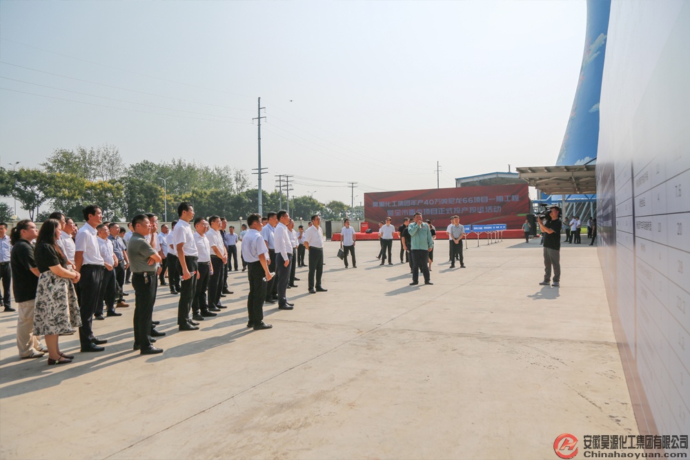 活动期间,刘玉杰、胡明文等领导听取投产投运项目情况介绍后,实地察看了华球(中国)公司产40万吨尼龙66项目一期工程生产车间。