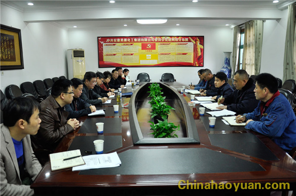 公司党委书记、董事长凡殿才汇报华球(中国)生产经营情况