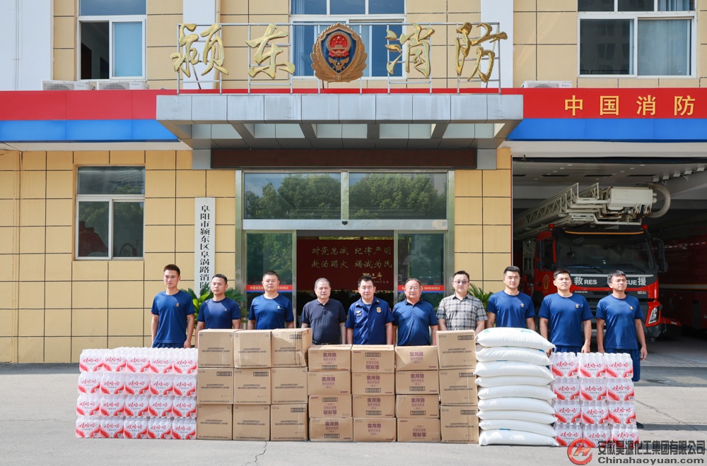 在“八一”建军节到来之际,7月29日下午,公司党委副书记、副总经理杨捷一行来到颍东区消防救援局慰问消防官兵,为他们送去米、面粉、食用油、矿泉水等慰问品,向奋斗在执勤一线的消防官兵致以诚挚的问候和崇高的敬意。