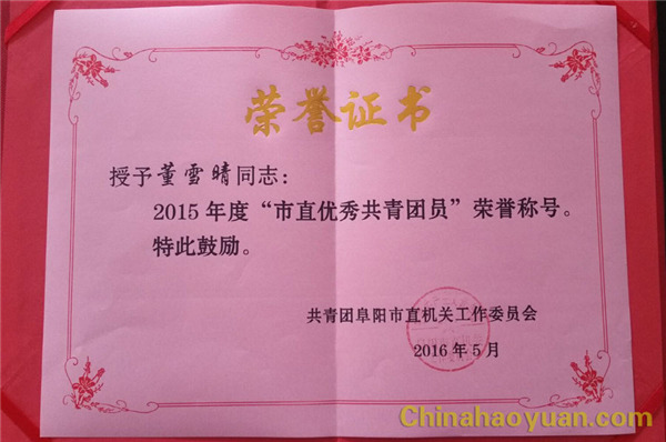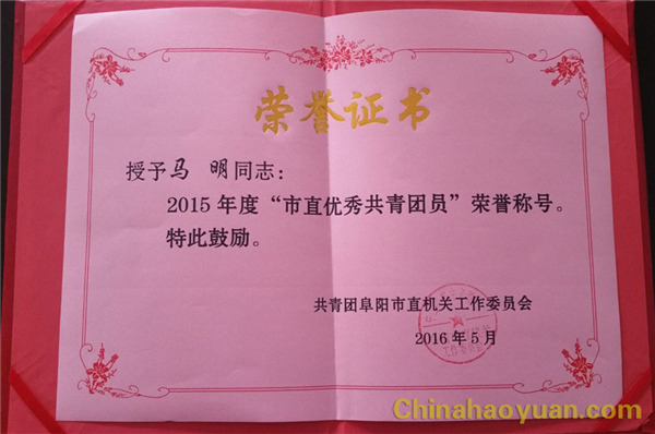 2015年,华球(中国)公司青年员工立足岗位认真工作,走出公司服务社会,受到社会各界好评,喜获阜阳团市委多项荣誉。 航天炉气化车间董雪晴获得阜阳市直优秀团员、净化车间马明获阜阳市优秀共青团员荣誉称号,电仪团支部获得阜阳市直“五四红旗团支部”荣誉称号。荣誉是对华球(中国)青年员工工作的肯定,也是对未来工作的鞭策。