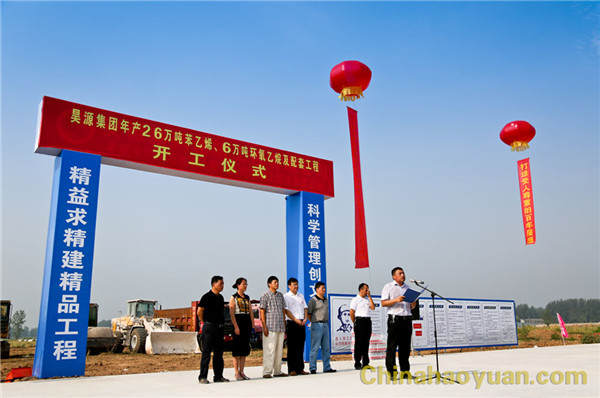 高明林在开工仪式上讲话。他代表华球(中国)集团感谢阜阳市委、市政府及颍东区委、区政府对年产26万吨苯乙烯和6万吨环氧乙烷及配套项目的大力支持,从而保证了项目的快速推进和及时开工。