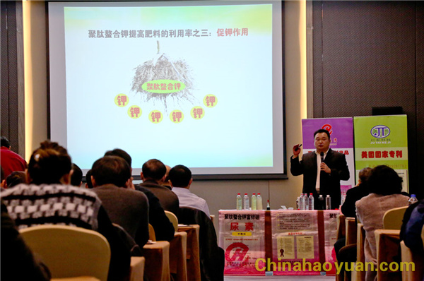 北京巨泰科技有限公司董事长魏安兴向参会经销商分析了聚肽螯合钾富锌硼尿素产品机理报告。