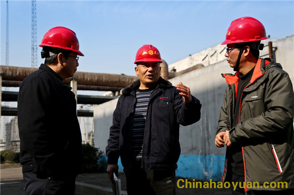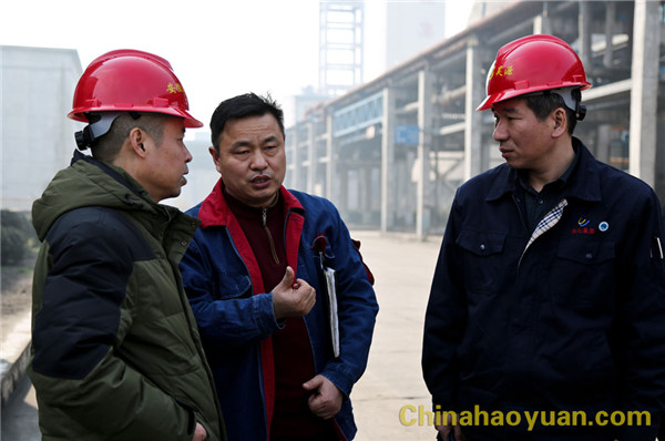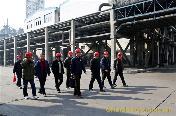 张海生、吴珍汉陪同淮化集团客人到生产一线,参观生产现场管理。