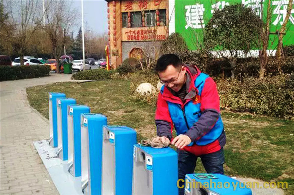 更不能不提的是"小绿"了,对给予我们方便的小绿自行车,志愿者们格外的照顾,让小绿们干净美丽得仿如刚刚现身在阜城之中。