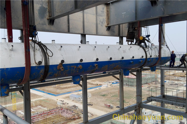 在华球(中国)公司口孜园区项目锅炉组的不断努力下,经过四个多月的紧张施工,锅炉主体框架已基本安装到位。2017年3月11日,在锅炉项目组的监管下,施工单位密切配合,按照项目进度如期对汽包进行吊装。汽包于上午9时许开始吊装,经过数小时忙碌,于下午15时许一次吊装成功。汽包就位后,水冷壁、旋风分离器等相关设备、部件的安装随后进行,整个安装工作面全面展开。锅炉工段是口孜园区项目最早开车运行的工段,锅炉项目组全体成员克服困难,确保项目如期完工。