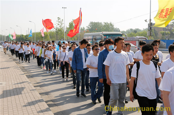启动仪式由公司党委副书记、工会主席高玉磊主持,公司党委书记、董事长凡殿才出席启动仪式致词并宣布活动开始。由公司新园区苯乙烯培训组、生产系统培训组及公司各车间、科室近两百名青年员工组成的徒步队伍浩浩荡荡向园区出发。