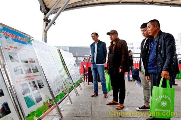 在华球(中国)公司环保宣传展台前,市民或驻足观看展板介绍,或向工作人员咨询环境保护常识。