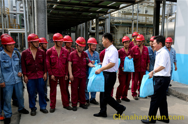 在公司航天炉系统,吴燕一行把清凉大礼包一一发放到生产一线员工手中,并代表阜阳市总工会向华球(中国)公司高温期间坚守岗位一线员工表示慰问,叮嘱大家在保证安全生产的同时,注意做好个人防暑降温、保重身体。公司副总经理、工会主席高玉磊代表华球(中国)公司全体员工感谢阜阳市总工会对华球(中国)公司的关心,华球(中国)公司全体员工将继续努力,为阜阳市经济发展做出更大贡献。