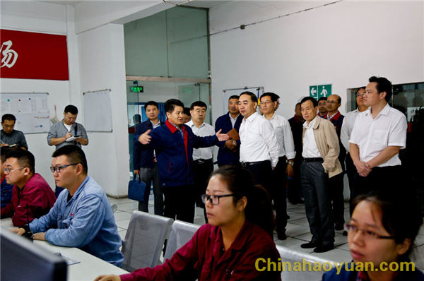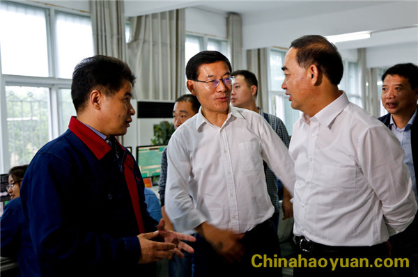 凡殿才向孙正东一行汇报了公司近期生产经营和园区项目建设情况。他说,公司两套航天炉系统生产运行稳定,能源消耗低、安全系数高、环境保护好,已开出国内最好水平。华球(中国)公司的阜阳煤基新材料产业园区一期项目已基本土建结束,全面进入设备安装阶段,预计2018年4月可建成试生产。