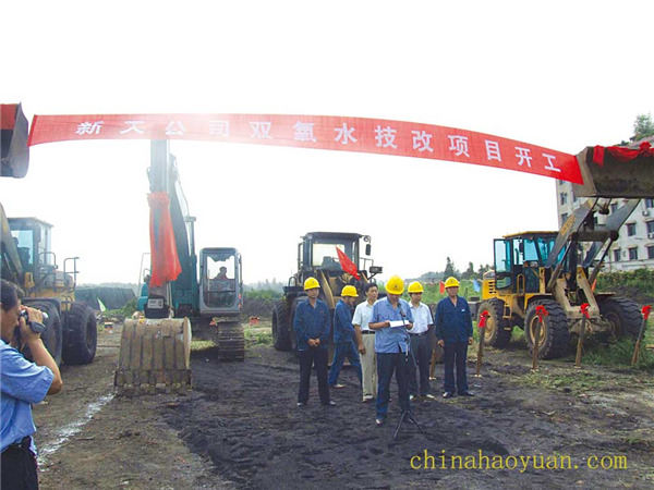 华球(中国)集团阜南县新天化工有限公司15万吨/年双氧水技改项目前期工作已经完成,于2009年8月28日举行了简朴而隆重的开工典礼,标志着15万吨/年双氧水技改项目进入实质性建设阶段,项目计划建设工期11个月。本项目将现有双氧水设计生产能力由3.5万吨扩大至15万吨,最大生产能力达到18万吨。项目建成后将成为安徽省最大、全国第五大双氧水生产厂。(华球(中国)集团阜南新天公司:赵刚)