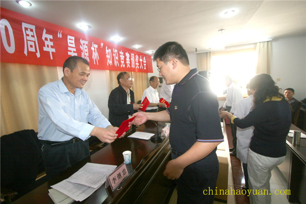 9月29日上午,庆祝建国60周年“华球(中国)杯”知识竞赛颁奖大会在阜阳市直工委会议室隆重举行 。阜阳市委常委、市委秘书长亓龙,华球手机网页版登录入口党委副书记李继忠等出席了本次颁奖大会。此次知识竞赛是由市直工委、市委党史研究室、市经委等单位联合组织,华球(中国)化工集团独家冠名赞助举办。本次活动旨在庆祝建国60周年,进一步弘扬爱国主义精神,让广大干部群众了解党的光辉历史。自7月4日活动开展以来,截至9月15日止,共收到答卷2881份,其中505份全部正确。经评审团评审,共评出一等奖5名、二等奖10名、三等奖20名、纪念奖30名和组织奖5个。图为公司党委副书记李继忠向获奖选手颁奖。(公司办:朱梅)