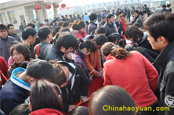 安徽华球(中国)天泉塑业公司总经理田怀广介绍:“项目目前需要大量的农民工,一期工程就需要300名农民工,如果二期投产后,还需要500名农民工。”在厂方的组织下前来应聘的农民工参观了厂区、厂貌、生产车间和生产现场,让企业与应聘者有更充分的交流与选择平台,招聘洽谈会得到了广大农民工和其他求职者的积极响应,当天就有256名农民工与其他求职者与企业签订了意向协议,并有28名求职者现场与企业签署了劳动合同,招聘洽谈会取得了圆满成功。 (工会 温玉丹)