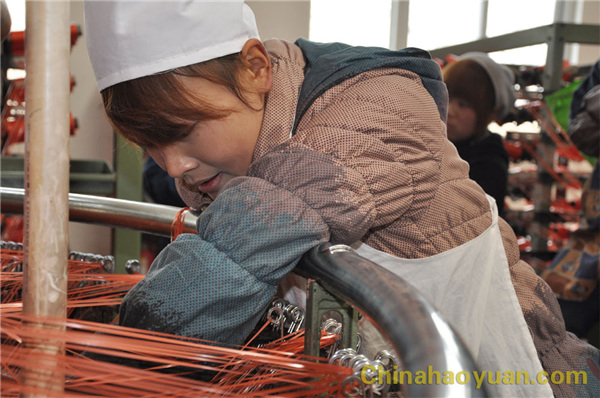 沐浴着三月的春光,女工们各个神采飞扬。比赛现场,拉丝挂丝女工们比的是技巧和速度,只见女工们个个健步如飞,细心准确地将丝线挂在正在旋转的丝线轴上;圆织女工们比的是细心和熟练,大家相互加油、互相喝彩。经过激烈角逐,拉丝、圆织、缝口、套袋岗位第一名分别由袁文凤、李小青、时淑玲、刘娟获得。