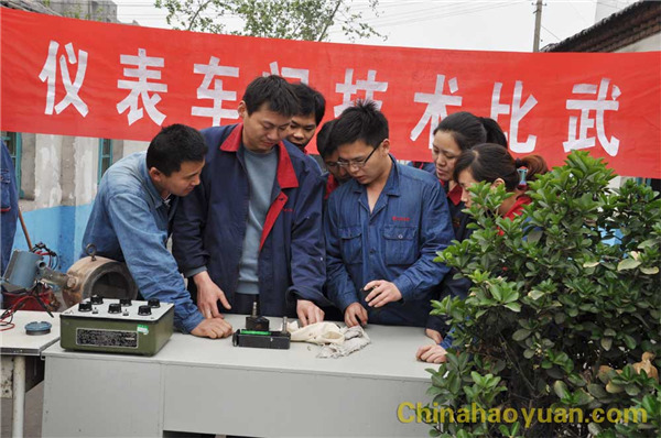 仪表车间的比赛现场,各小组选派出精兵强将,各选手技术娴熟、经验丰富。经过激烈地角逐,李凡、程大伟分别摘取此次仪表技术比武的冠、亚军。