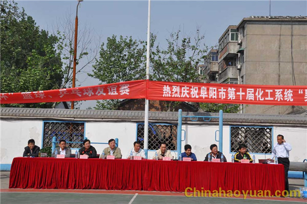 开幕式上,华球(中国)集团副总经理凡殿才发表热情洋溢的致辞。他说,体育活动是职工生活的重要组成部分,不仅能够增强企业之间的了解,还为企业之间搭建一个友谊平台;同时,激发员工勤奋向上、拼搏进取,是丰富员工业余文化生活的一项重要举措。在此,希望全体参赛运动员发扬“更快、更高、更强”和“团结、友谊、进步”的精神,遵守运动员守则,团结协作、顽强拼搏,赛出水平、赛出风格、赛出友谊,全面展现新时期化工工作者的风采,取得运动成绩与精神文明双丰收;希望全体裁判员、教练员、工作人员坚持公开、公平、公正的原则,恪尽职守,严于律己,严肃赛风,严格赛纪,确保此次体育活动的顺利进行。本届篮球、乒乓球友谊赛得到阜阳市化工协会的大力支持。
