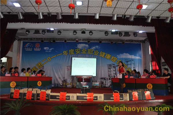 为扎实推进“安全生产月”各项活动的顺利开展,提高员工的安全意识,在全公司广泛普及安全知识,营造“我要安全、我会安全、我懂安全”的浓厚氛围,6月23日上午,华球(中国)集团2011年“安全职业健康”综合知识竞赛在公司礼堂隆重举行。出席本次比赛的领导有公司副总经理凡殿才、工会主席滑海东、安全科科长沈献、生产办副主任赵文华、动力处副处长刘开莲等。