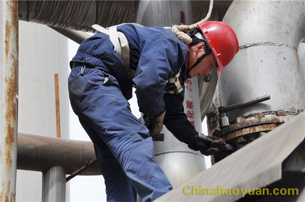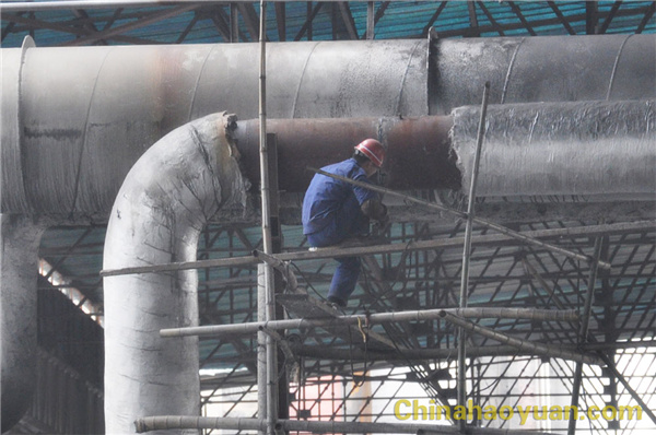 ③、维修人员在为设备加固。 ④、维修人员在疏通循环水管道。