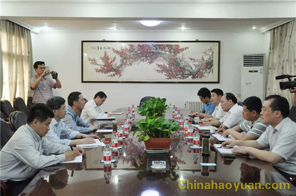 公司党委书记、董事长郑高潮向刘辉副市长一行汇报生产情况